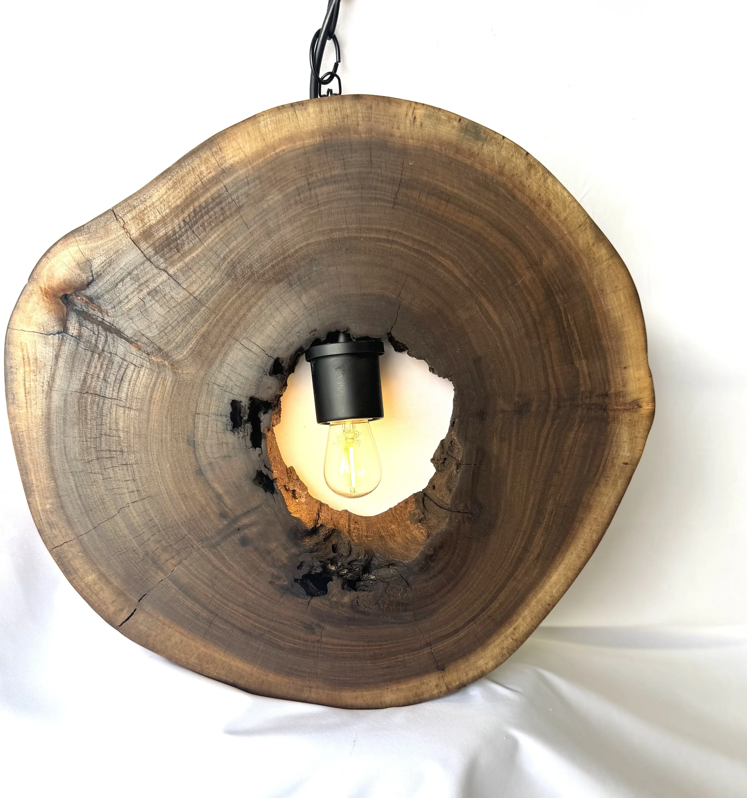 Black walnut circle cut out light. Designed to be hardwired in.